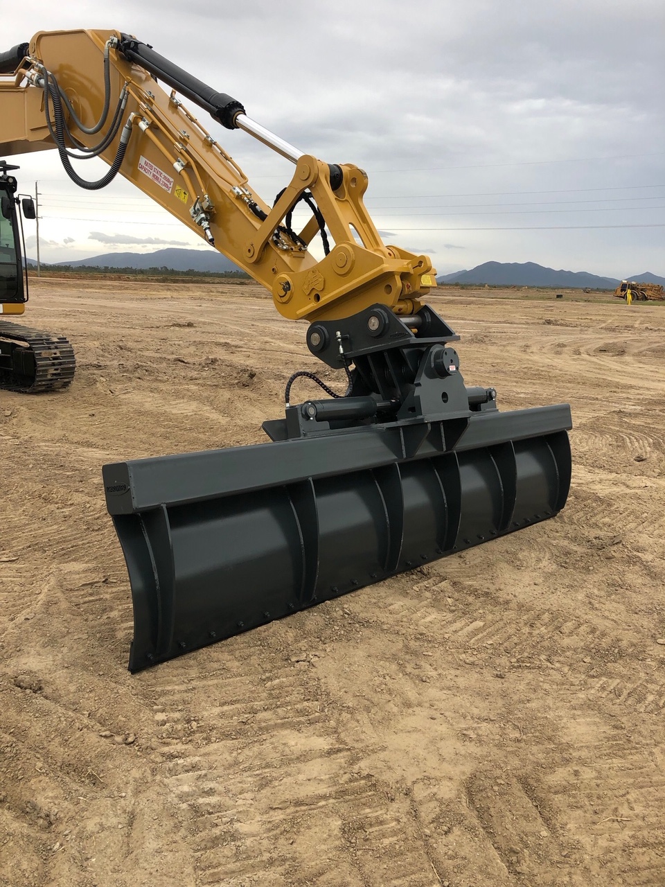 The Tilting Grader Blade features a hydraulic mechanism that allows the blade to tilt left or right, giving the operator full control over grading angles. This makes it easier to achieve consistent slopes and smoother finishes on complex surfaces.